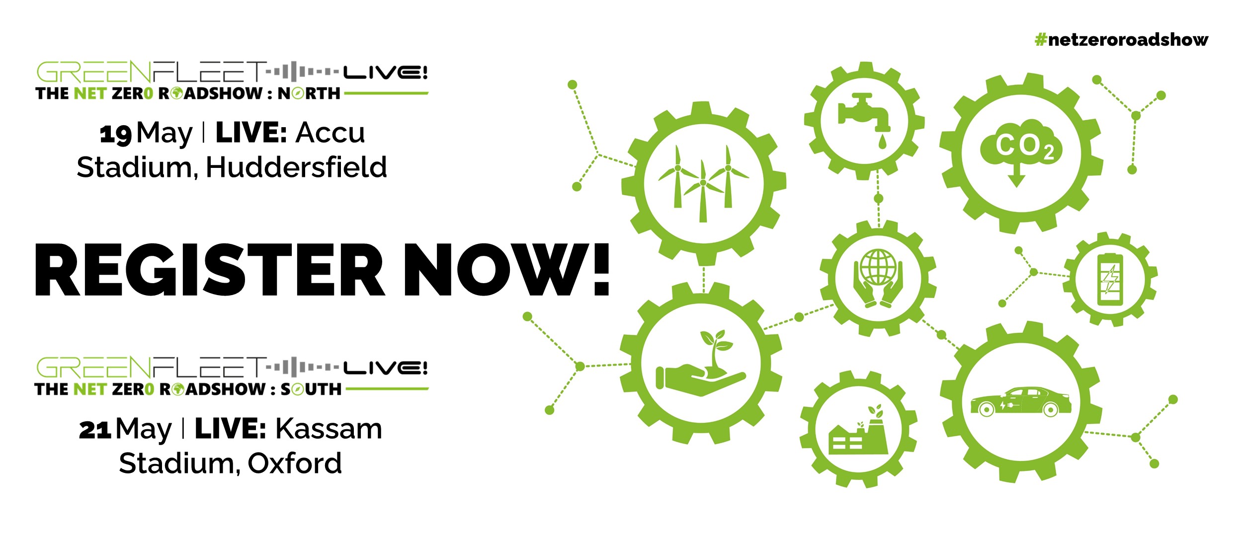 The GREENFLEET NET ZER0 ROADSHOW is made up of 4 individual events in 2026. Later in the year, we take our expertise to Scotland and Wales, but we kick off with GREENFLEET Live! – North & South.
